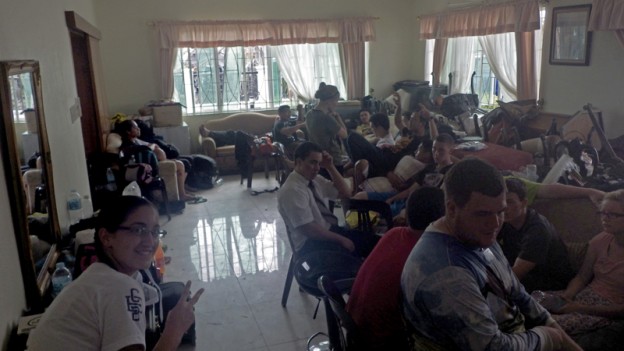 After 1:00 pm had passed, President Andaya had still not returned, no one from the Area Presidency had shown up, and no helicopters had landed in the parking lot. Many of the missionaries were just sitting in groups talking. Some of us were napping. We tried to keep ourselves busy, but there wasn’t very much to do except wait. As the time passed, a few missionaries that had been evacuated from their areas arrived at the mission home. Among those who arrived was Elder Morley, the one who had been bitten by a snake after the storm. He was doing remarkably well for being one of only a small handful of missionaries that were injured during or after the storm.